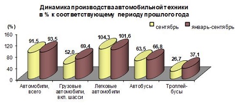 Производство легких коммерческих автомобилей в январе-сентябре снизилось на 31% – до 63,7 тысячи единиц. Рост показали «Автодом» (в 6,2 раза) и «Автотор» (+48,5%). Спад зафиксирован на заводах «Соллерс Карго» (-80%), «Автомобильные индустриальные технологии» (-77%), «Нижегородец» (-62%), «Соллерс Алабуга» (-52%), «Тракс Восток Рус» (-48,5%), «ВИС-Авто» (-41%), ГАЗ (-39,5%), «Луидор» (-26%) и УАЗ (-7%).