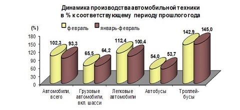 Производство легких коммерческих автомобилей в январе-феврале снизилось на 22% – до 10,7 тысячи единиц. Наибольший объем выпуска зафиксирован на заводах ГАЗ (-5%), «Лада Ижевск» (+54%) и «ВИС-Авто» (-46%).