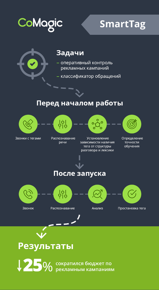 – Мы видим два кейса его использования. Первый: оперативный контроль эффективности рекламных кампаний и второй: классификация обращений. Важно отметить, что SmartTag