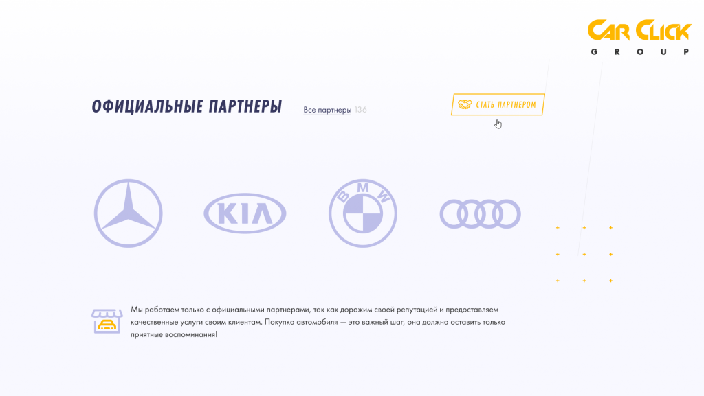 - Благодаря технологиям CarClick.Ru вы значительно снизите свои затраты на продажи и маркетинг. Площадка не берет «процент» от сделок и не придерживается цели по выкачиванию из партнеров мегабюджетов.