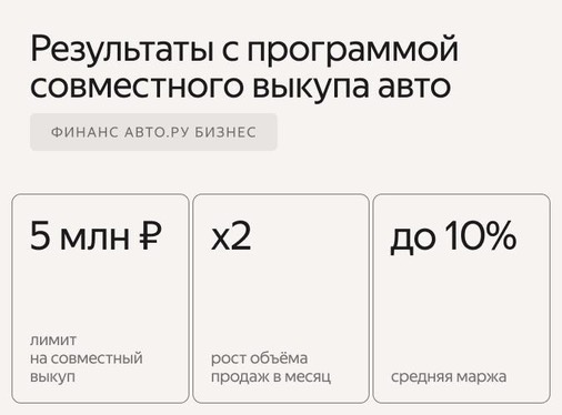 Лимит на совместный выкуп вырос до 5 млн ₽, продажи выросли с 4 до 8 автомобилей в месяц, маржа при оптимизированных расходах остаётся стабильной.