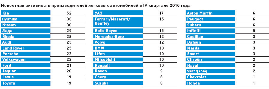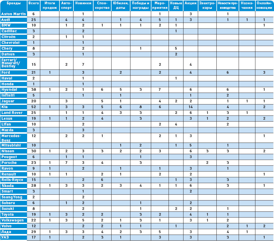 Цель статьи – обобщить все новости за указанный период, тем самым помочь автомаркетологу в обработке сообщений от коллег, партнеров и конкурирующих брендов. Кроме того, наш отчет поможет разобраться, PR-службы каких автомобильных фирм работали в четвертом квартале 2016 года наиболее активно.