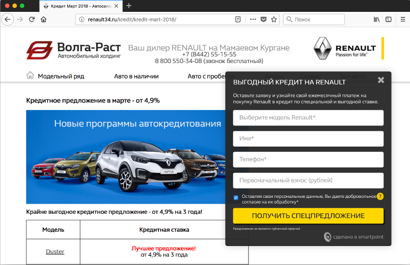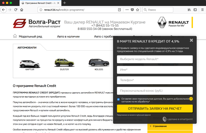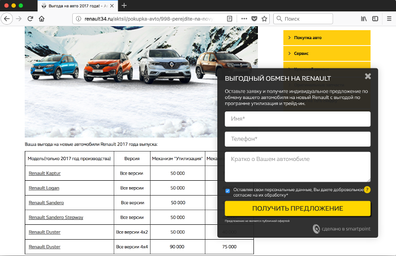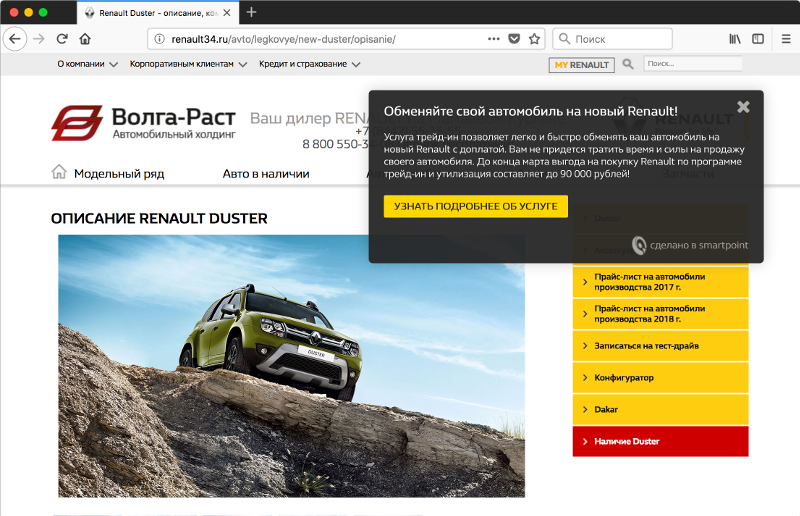 При желании каждый автодилер может разработать такой набор сценариев с учетом специфики именно своего покупателя. Мы в «Смартпойнт» разработали универсальный набор сценариев, который показал свою эффективность на сайтах автодилеров разных марок. Поехали!