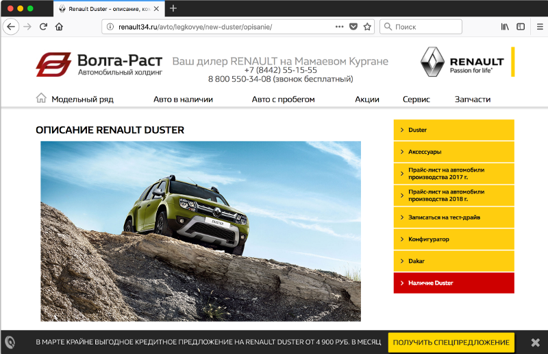 Обратите внимание, что в примерах приведены показатели для конкретного сайта автодилера – официального дилера Renault в Волгограде (группа компаний «Волга-Раст»).