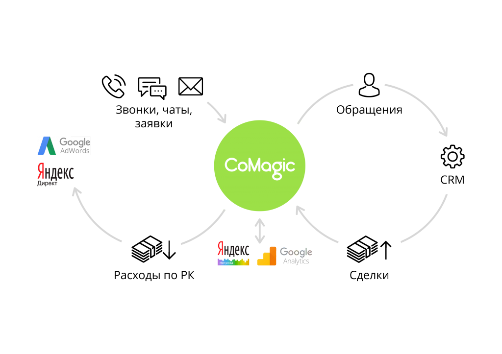 Google Analytics – бесплатный сервис, предоставляемый Google для сбора детальной статистики посетителей веб-сайтов. Он работает только с интернет-источниками. Roistat собирает данные из CRM системы, рекламных площадок и сайта клиента. Из этих данных он формирует отчеты по ключевым бизнес-показателям. CoMagic – это сервис сквозной аналитики с встроенными каналами обращений. Данные о расходах на рекламу он получает из системы «Яндекс.Директ» и Google AdWords. Данные по типам обращений сервис получает от собственных каналов коммуникаций, таких как коллтрекинг на базе собственного оператора связи, форма лидогенератора, чат и звонок с сайта.